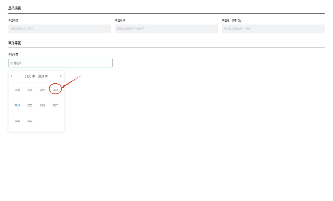 第四步:在点击“单位办理”后,选择申报年度为2023年,系统将会展示2023年度稳岗返还详细信息。若系统提示“当前单位没有对应申报年度的稳岗返还信息”,请密切关注相关信息,并在收到确认告知后及时办理。
