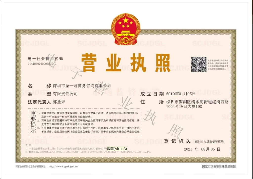●深圳市圣一君商务咨询有限公司点击数:1053